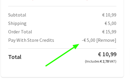 Clicking “Apply store credit discount” you can choose how much credit you want to use for this order.
